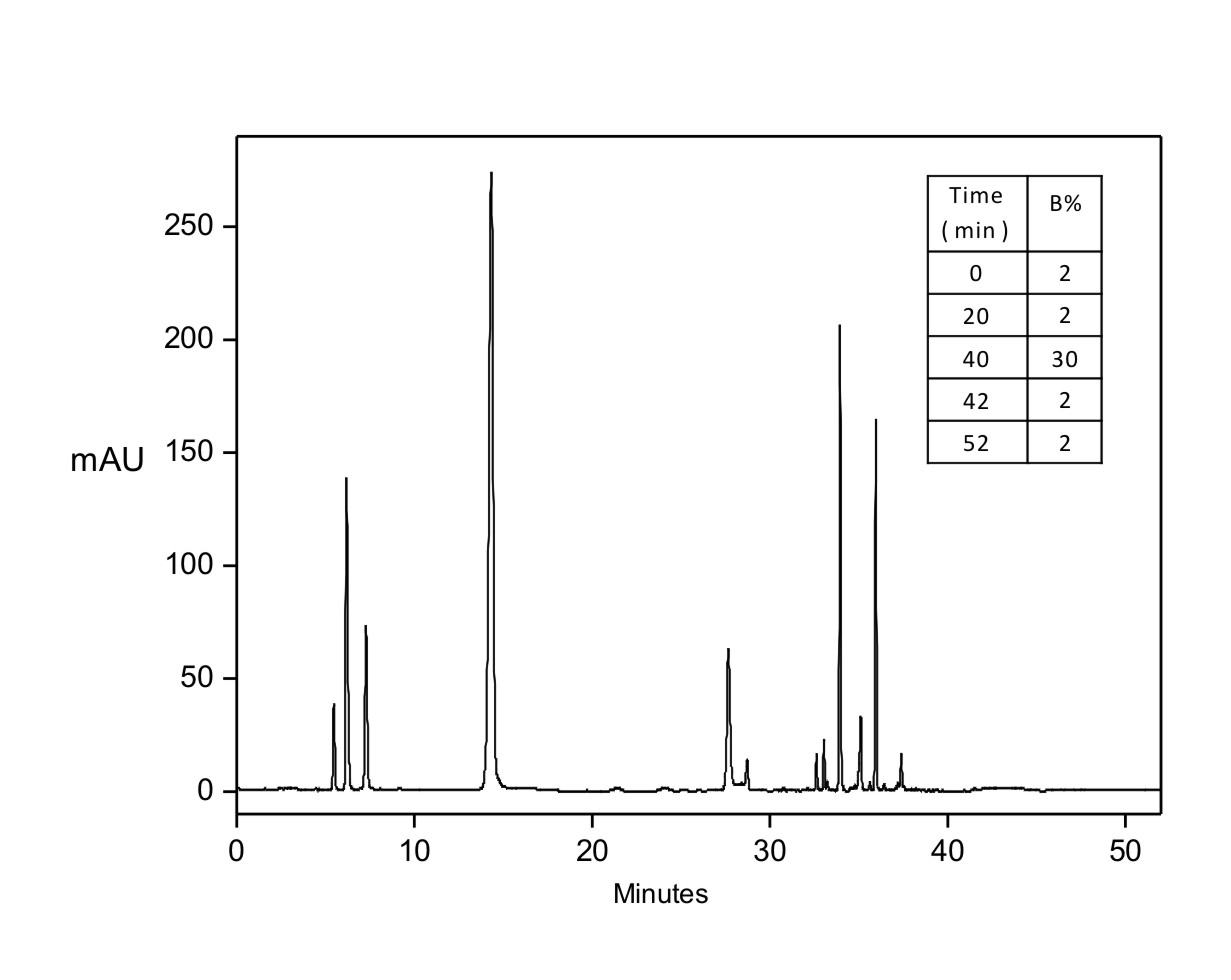 HP-C18 ( 5 µm, 120 Å, 4.6 x 250 mm ) |